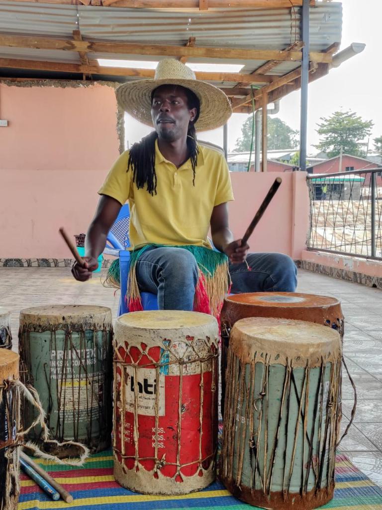 Lo que serían dos horas de taller pactadas se convirtió en una tarde entera de intercambiar no solo la música, sino el espíritu. Tocamos, cantamos, bailamos, nos vestimos con algunos accesorios tradicionales y al llegar el momento de compartir impresiones, Erick, uno fundadores del colectivo, nos dedicó sus versos improvisados correspondiendo a la fraternidad y buena energía que le manifestamos. Terminamos invitados a comer en una mesa donde se comparte lo que se tiene y se cocina para más de doscientos niños y jóvenes que encontraron en este espacio una alternativa a la dureza del entorno. Sanaa ni Kioo Cha Jamii – El arte es un espejo de la sociedad. El colectivo nació con ese propósito, el de poner el arte al servicio del alma. Son estrictos en las clases y los escasos espacios se dividen entre horas de oficina y aulas de pintura, instrumentos, producción musical y danza, pero en lo que son más estrictos es en su motivación de extender por unas horas la infancia de estos niños a los que las calles obligan a ser adultos desde tan pequeños, y mostrarles que desarrollar un talento, aunque no lleguen a ser profesionales, es una manera alternativa de habitar el mundo. Una que responde a la agresión con una sonrisa.