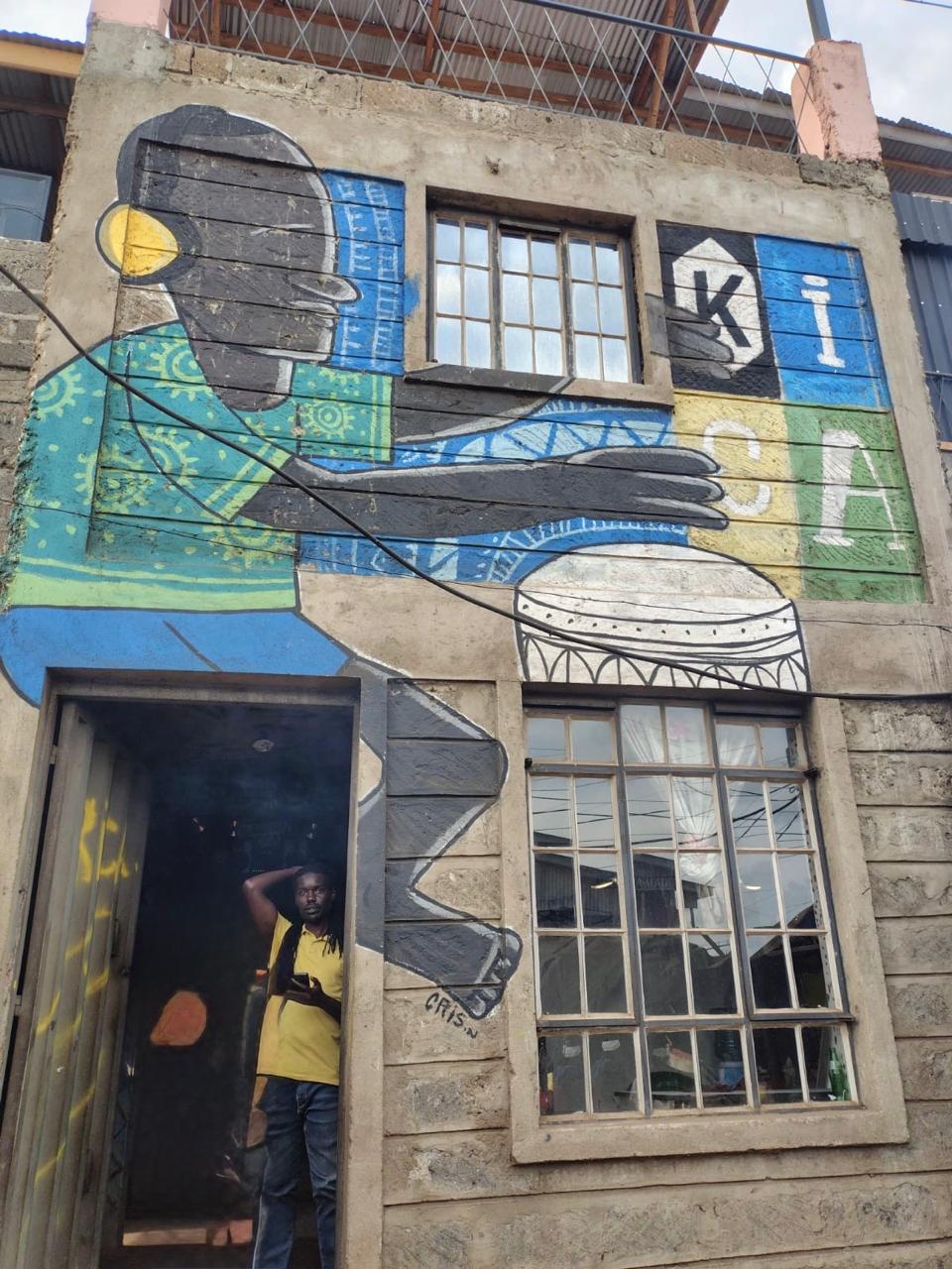 En la puerta del Kibera Creative Arts – KICA, tuvimos la primera muestra de la resiliencia que se requiere para hacerle frente a tantas adversidades y como siempre el humor sale al rescate. Nuestro anfitrión de nombre Philippe se presentó como flexible y nos invitó a recorrer el edificio a medio terminar, en el que ladrillos al aire comparten con obras de arte y es la sede donde funcionan desde hace un par de años. Al subir las escalas, nos dimos cuenta que su sobrenombre obedecía a una discapacidad de movimiento en su pierna de la que no supimos la causa, pero que en vez de lamentar convirtió en su marca personal desterrando cualquier posibilidad de lástima.